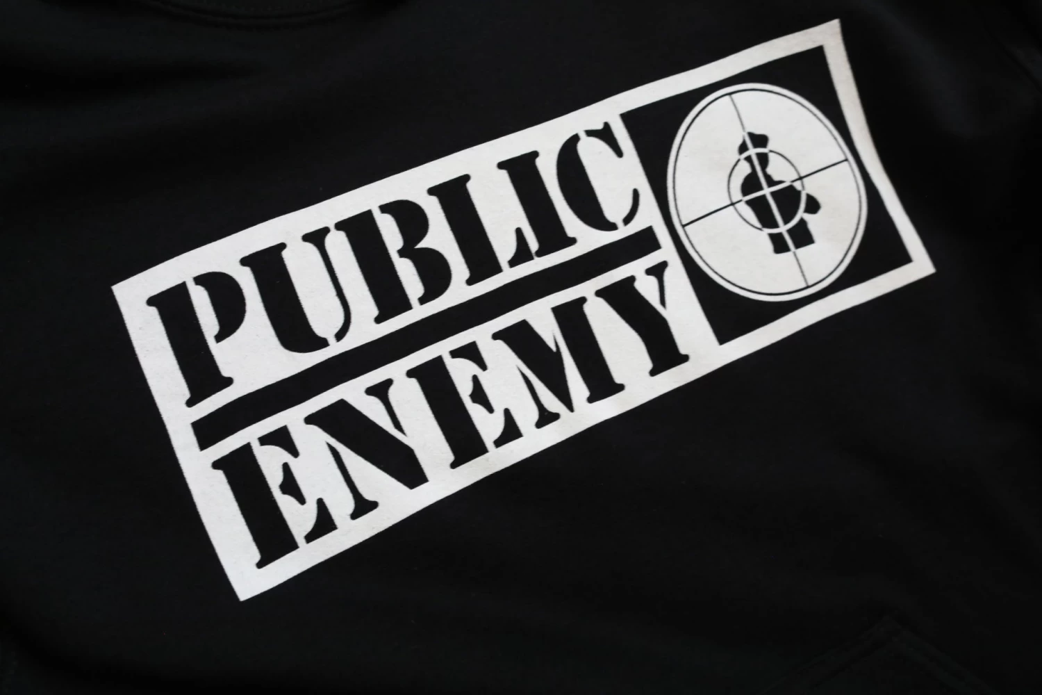 Officially Licensed Public Enemy hoodie. Features the legendary hip hop group’s famous crosshairs logo on the front and left cuff. Standard fit fleece hoodie with pouch pocket and solid rib trims.