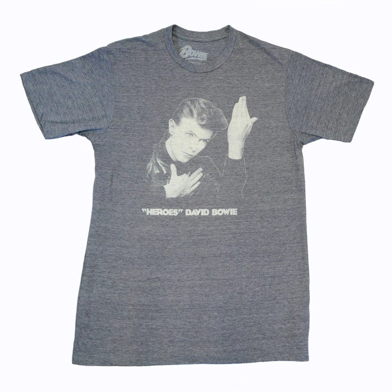A men’s soft fitted 30/1 cotton tee featuring a David Bowie graphic on front. Heather Navy.