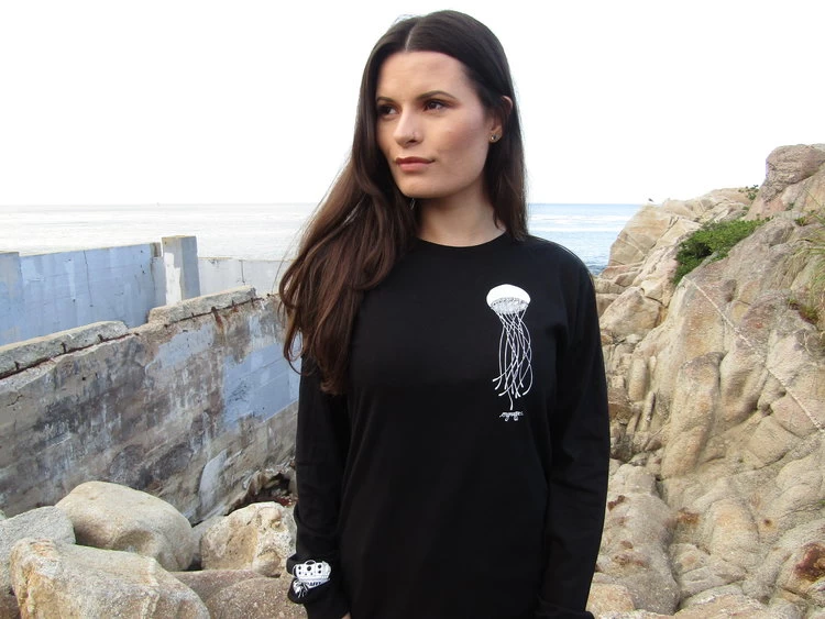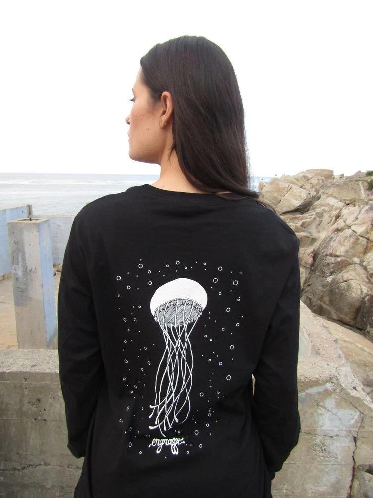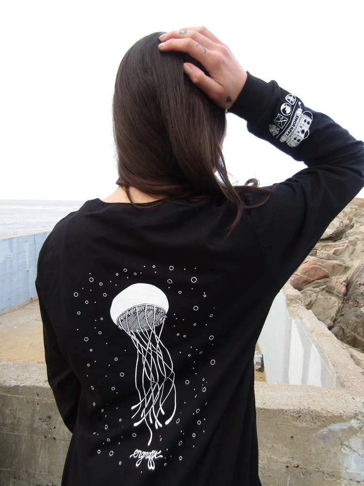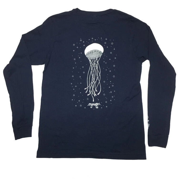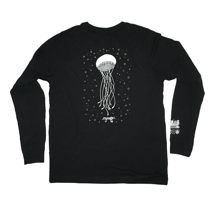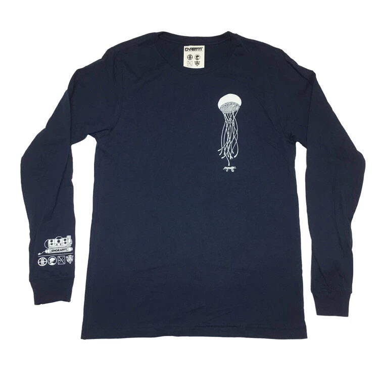 Features custom jellyfish design on left chest and across the back. Submersible graphic detailing on the sleeves.