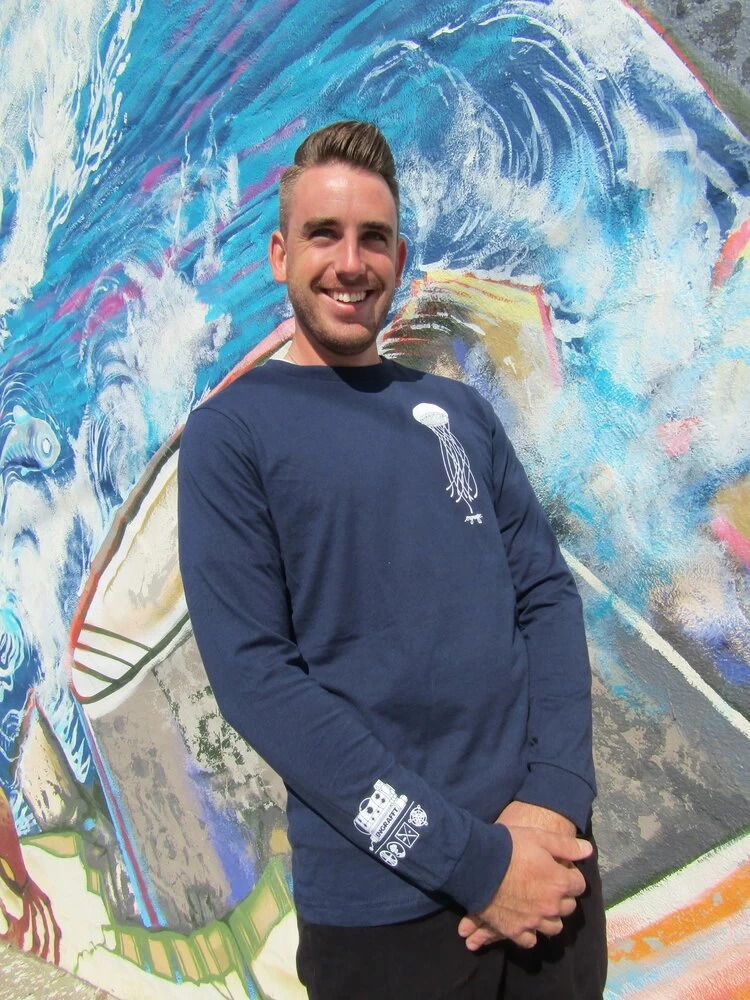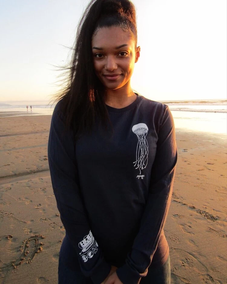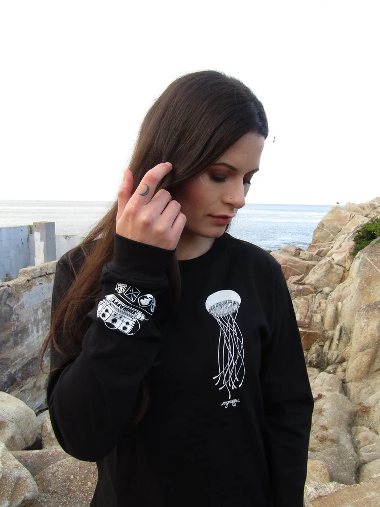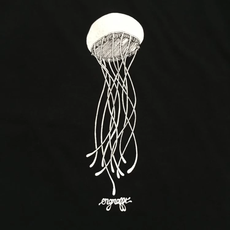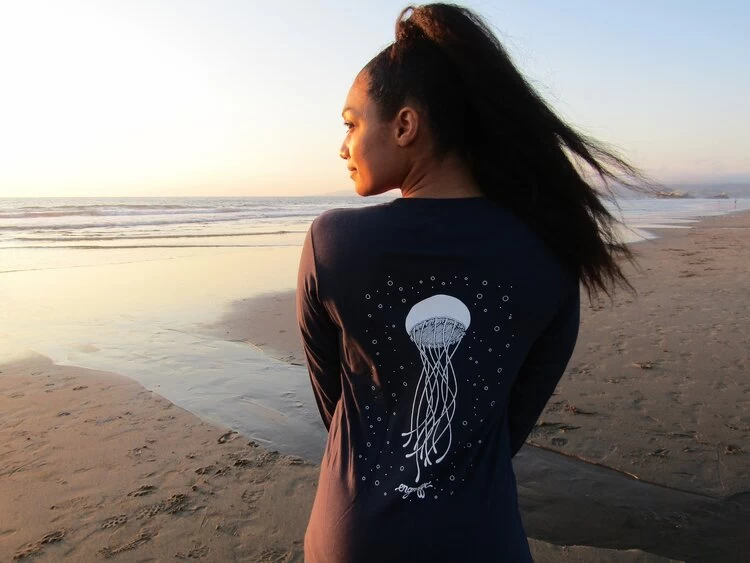 Features custom jellyfish design on left chest and across the back. Submersible graphic detailing on the sleeves.