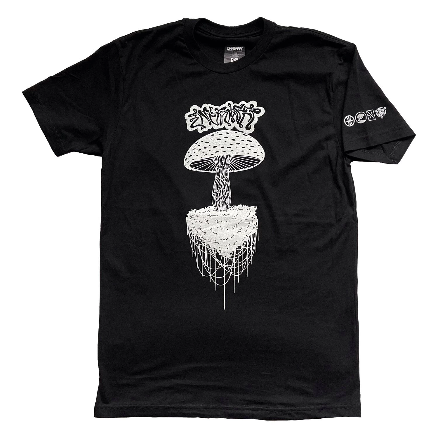 The Floating Mushroom Tee introduces some floating fungal freshness into the ENGRAFFT line. With a unique airborne mushroom that combines several different “Living” graphic art styles. In this latest floating nature formation design, the frequently featured dripping, hanging “Wiredrips” style takes the form of mycelium, mushroom’s underground root-like structure of fungus. Also incorporating a far out, psychedelic inspired font that reads “ENGRAFFT” to enhance the trippy shroomy design. 00% Airlume combed and ring-spun cotton 4.3 ounce tee