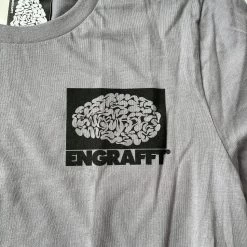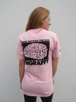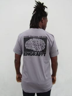 The signature Engraffted Mind in a box logo form reflecting the message “Think Outside The Box” on the back of the tee. The Engraffted Mind is your brain on ENGRAFFT. Coming in 2 colorways inspired by ‘brain colors’- a grey color called (Brain) Storm and Pink. This cerebral, ‘art infused’ tee is lightweight, super soft and premium quality. With hand printed graphics on front, sleeve and back.100% Airlume combed and ring-spun cotton 4.3 ounce tee