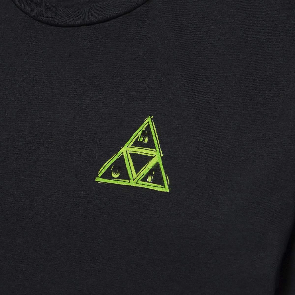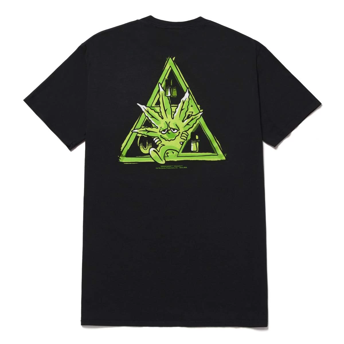 Part of the limited-edition HUF 420 Collection. Features classic HUF Triple Triangle Motif with hand-drawn Green Buddy illustration on the left chest and back.