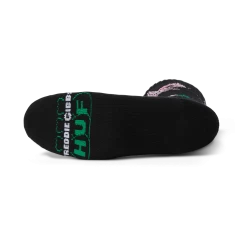 HUF x Freddie Gibbs collaboration celebrates the legendary rapper. Jacquard knit Big Boss Rabbit and Green Buddy pattern with a cushioned footbed. One size fits most socks with reinforced heel and toe.