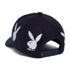 HUF pays homage to the glitz and glamour of the Playboy Clubs with the “After Hours” Collection. Features custom Rabbit Head embroidery with rhinestone eyes on a classic acrylic/wool 6 panel hat. Plastic snap adjustable closure, curved visor, and embroidered eyelets for extra ventilation.