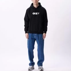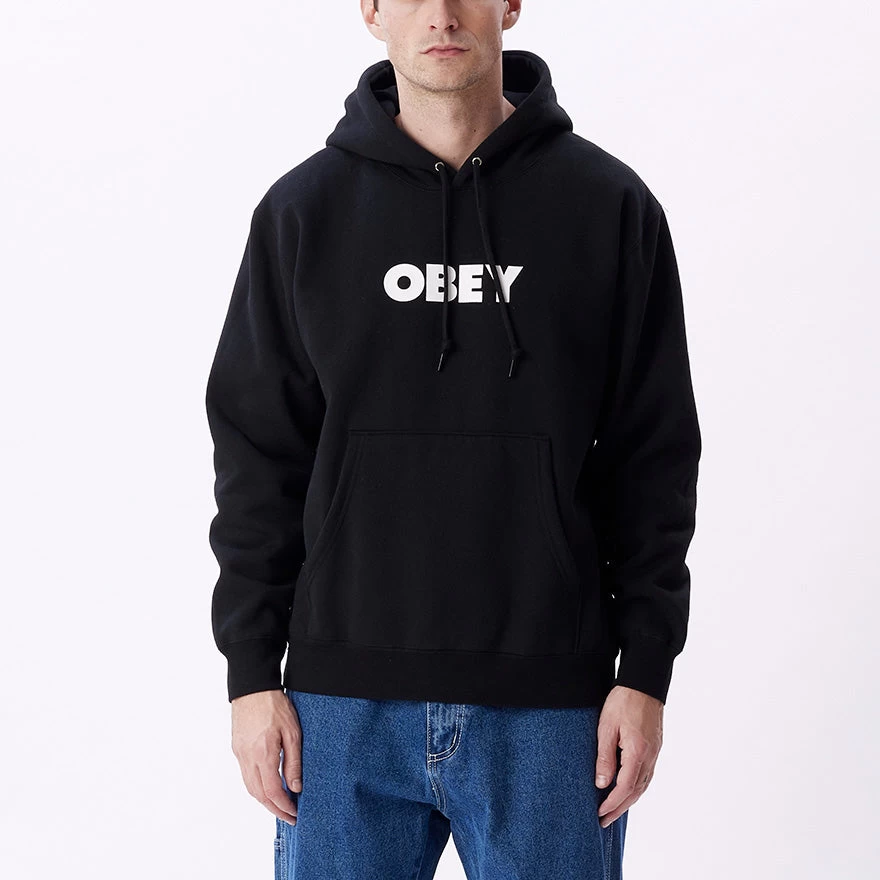 Classic fit fleece pullover with pouch pocket and solid rib trims. Bold OBEY logo on the left chest and across the back.
