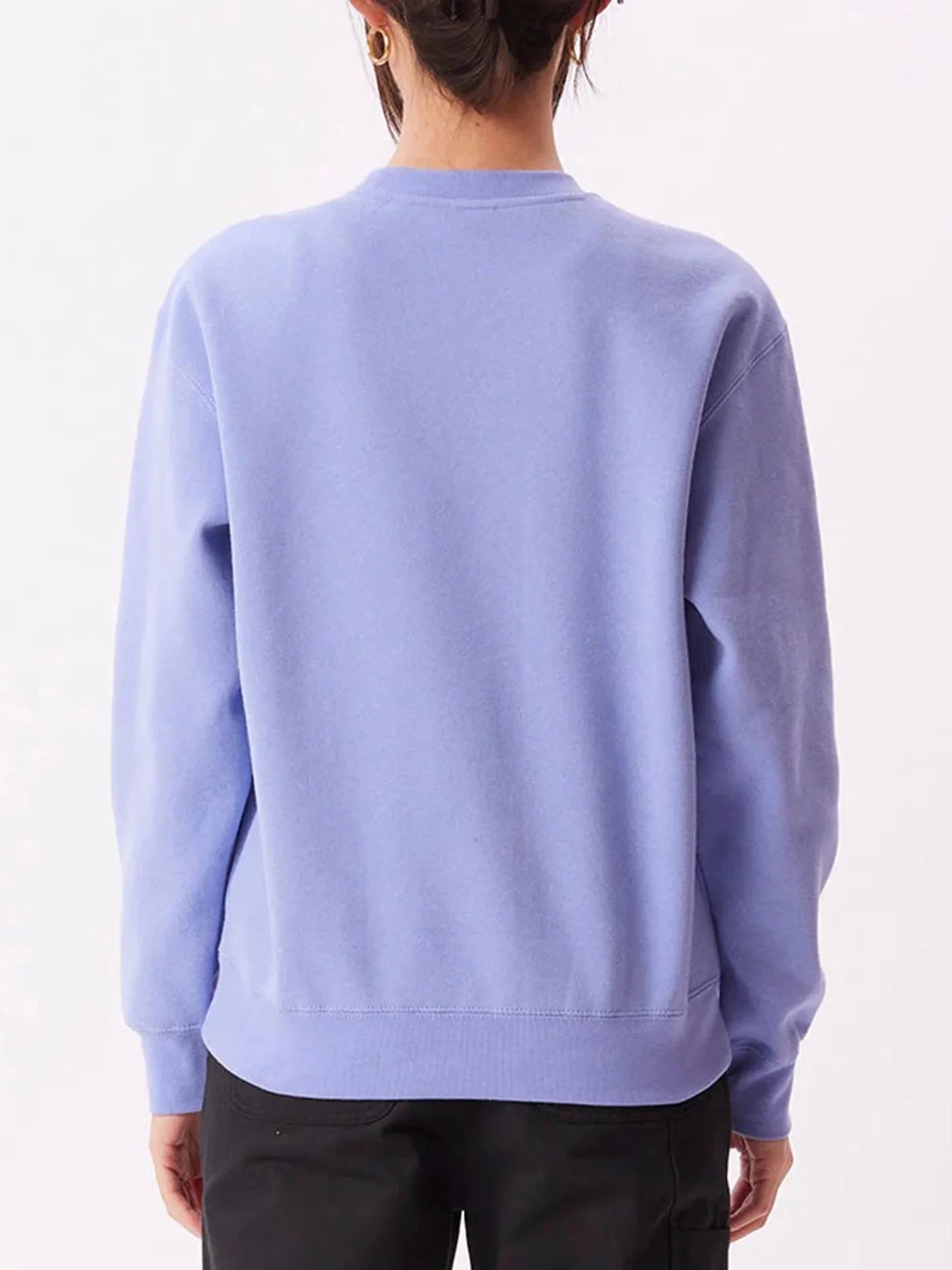 Soft fleece relaxed fit Obey crewneck with large cupid embroidery.