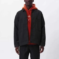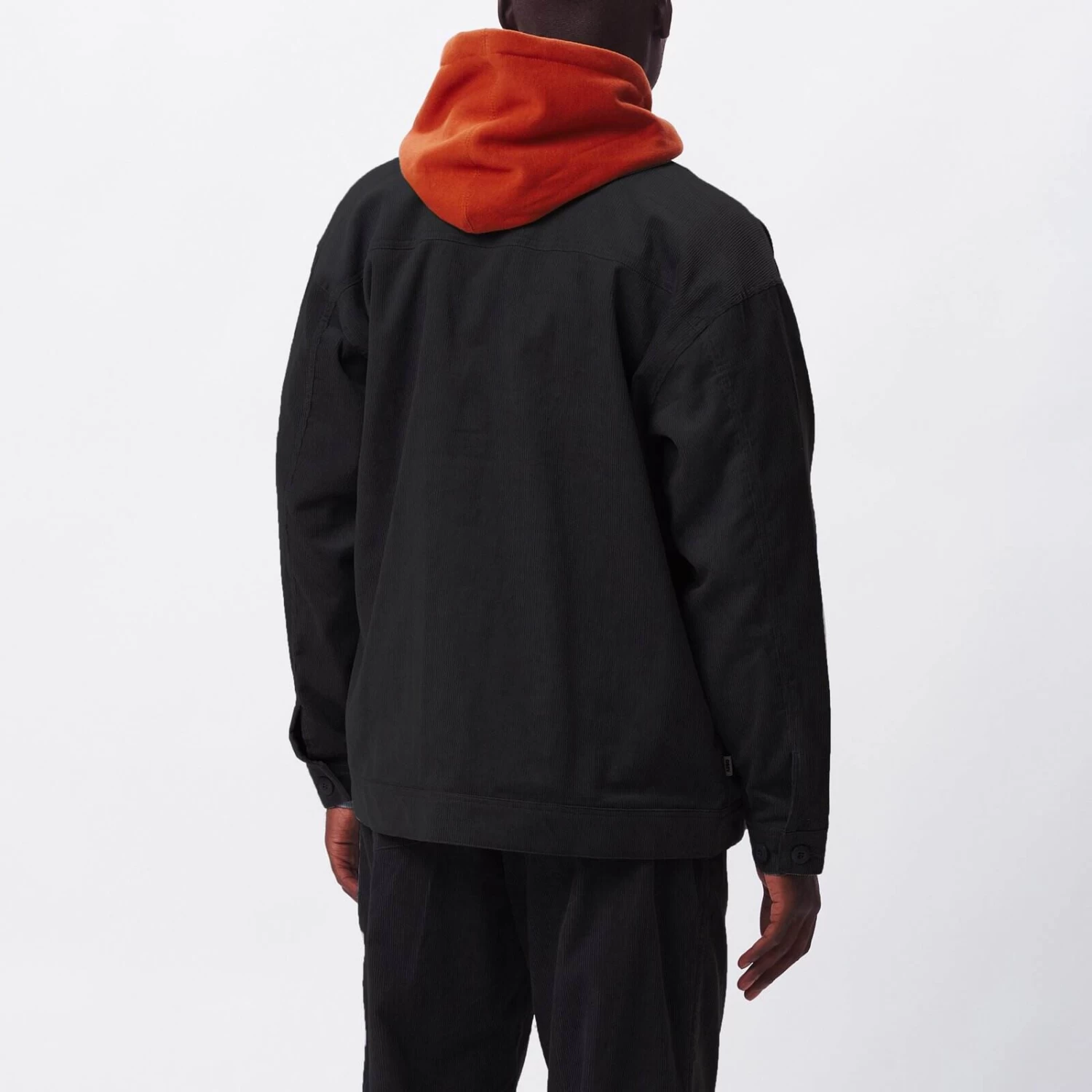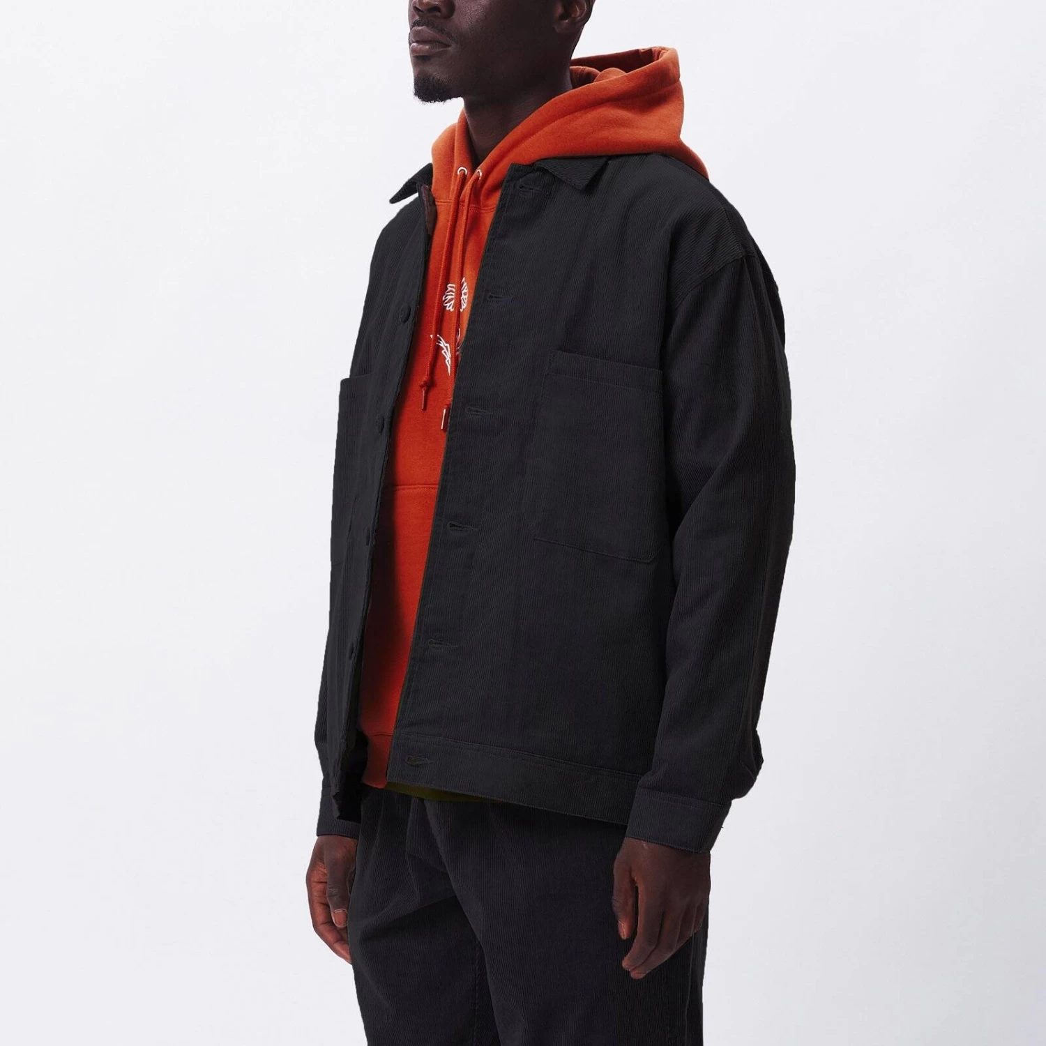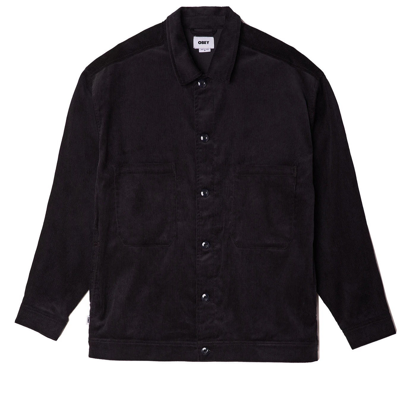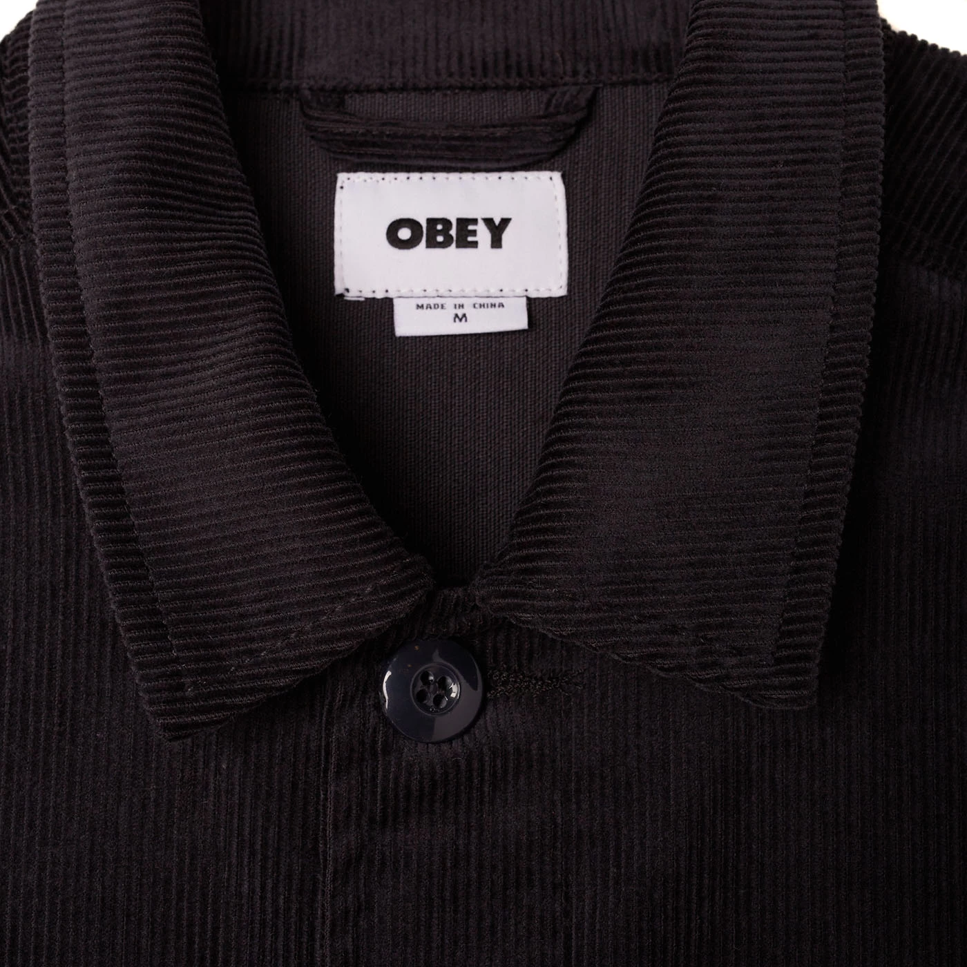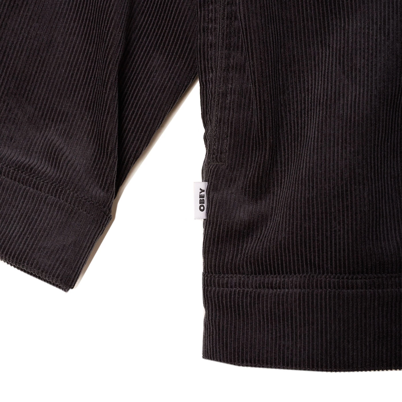 Regular fit corduroy jacket with button closure. Custom OBEY label on side and lowered pockets.