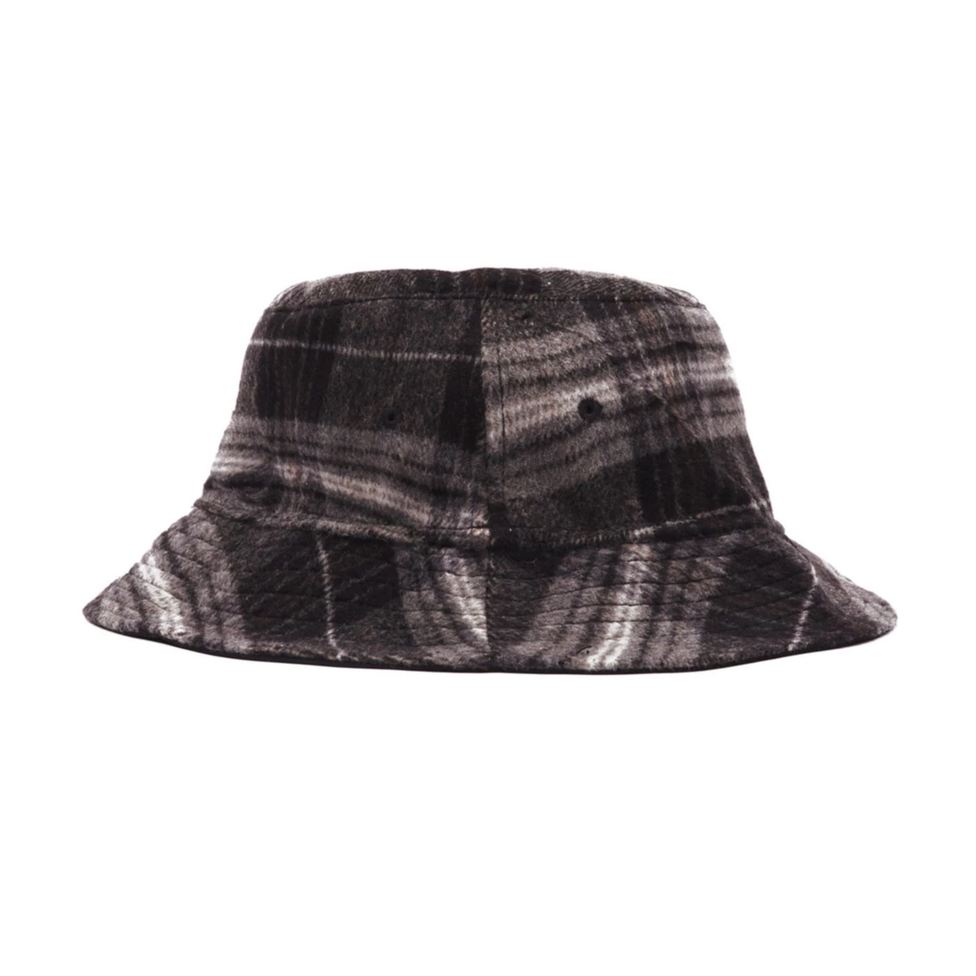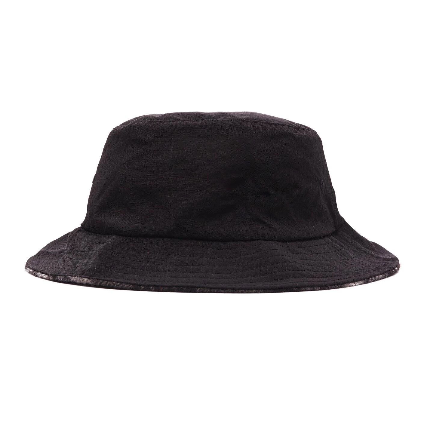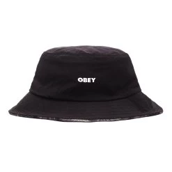 Reversible bucket hat with printed Obey logo and unstructured flat top fit. Classic black on one side and soft black plaid on the flip side.