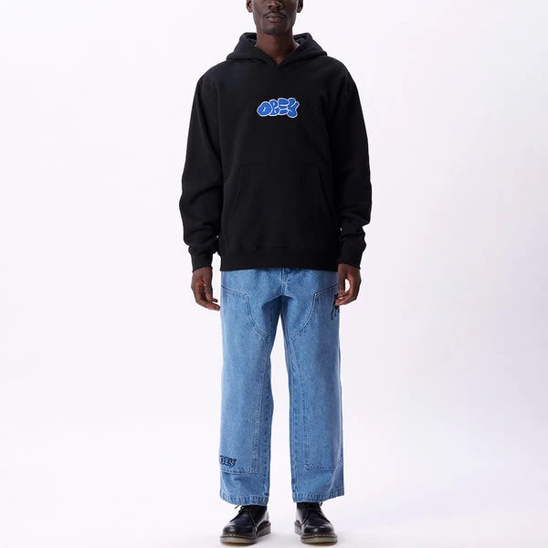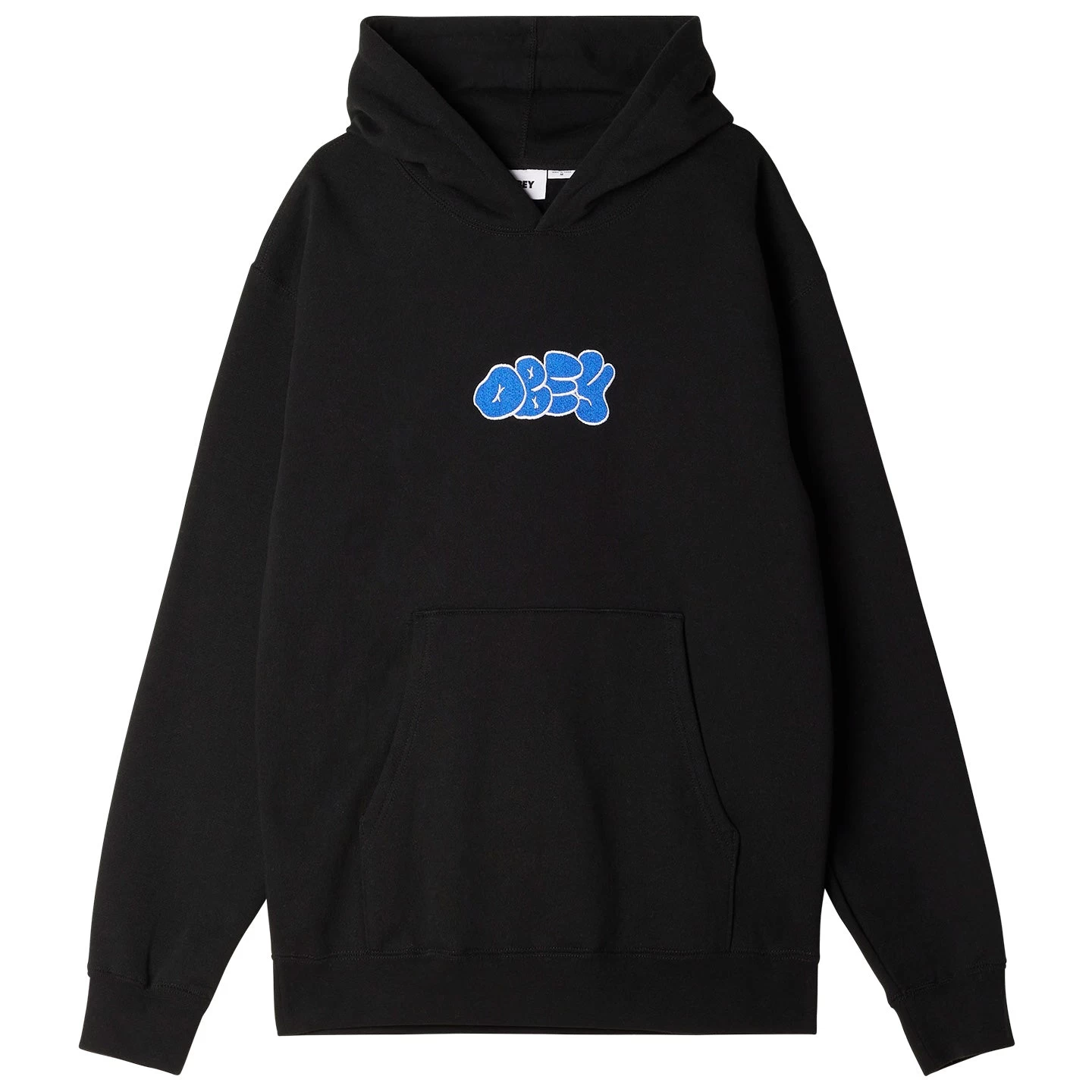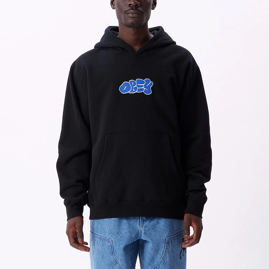 Classic fit premium extra heavy fleece pullover with pouch pocket and solid rib trims. Custom OBEY scribble tag chest embroidery.