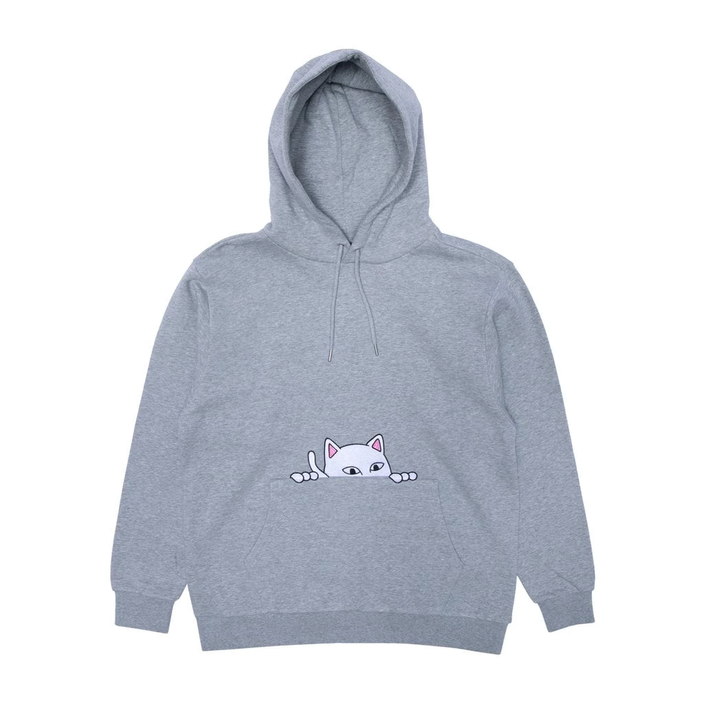 Lord Nermal is on the watch and staying undercover as he falls into a new season. Features an embroidered Nermal peeking out from the kangaroo pocket. Classic heather grey fleece with an adjustable hood.