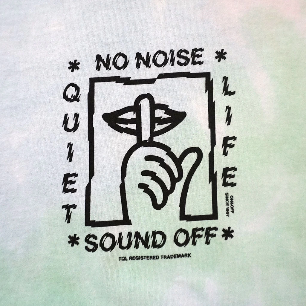 No Noise, Sound Off! Features fingers to lips classic graphic on a custom tie dye tee. (please note: custom= the tie dye print varies by tee)