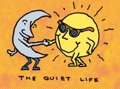 Features the sun and the moon keeping it cool and sharing a handshake on a custom tie dye tee. (please note: custom= the tie dye print varies by tee)
