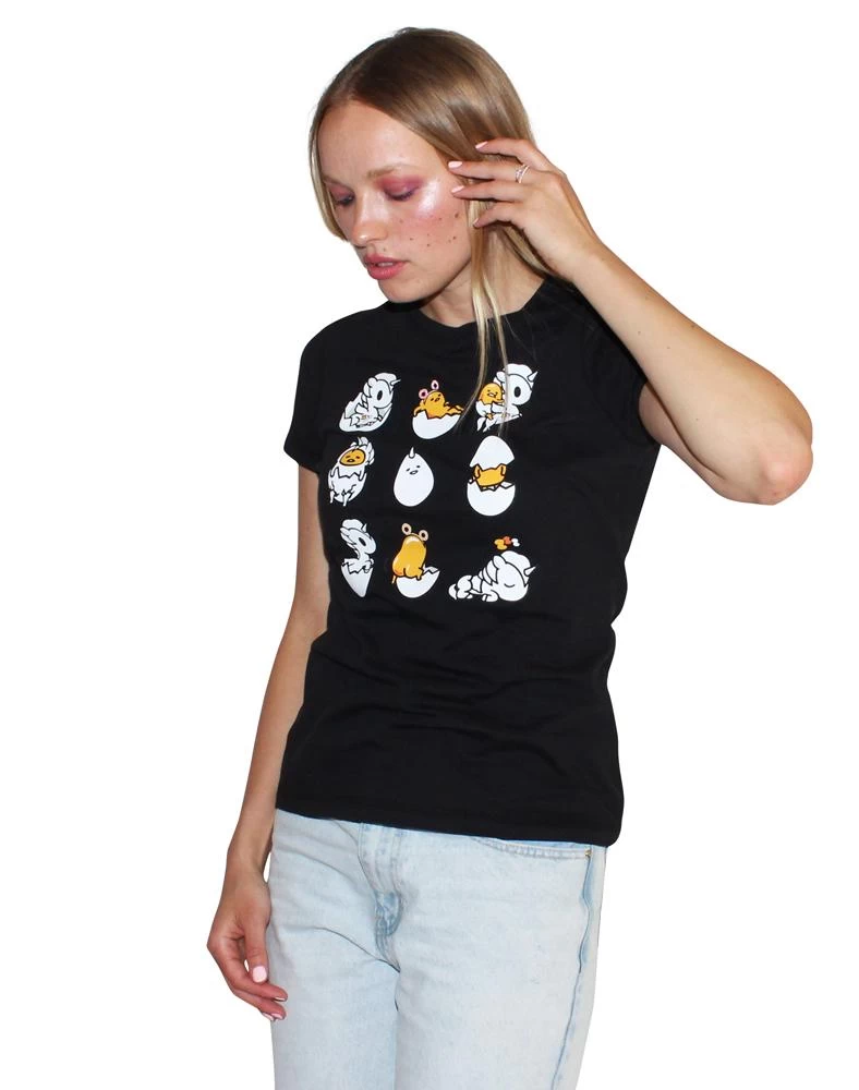 Just a glimpse into the busy scrambled life of a sleepy egg. Custom screen print on the front and tokidoki x gudetama logo on the upper back.